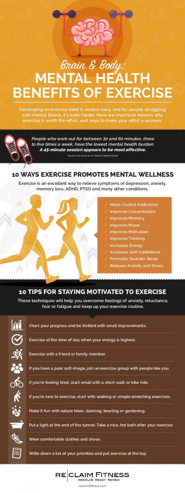 The physical and mental benefits of exercise are numerous. Research also shows that exercise can help with memory loss and addiction control. It can promote better sleep, increase energy, and increase motivation. Physical activity is even linked to better cognitive function, such as increased focus and critical thinking skills.