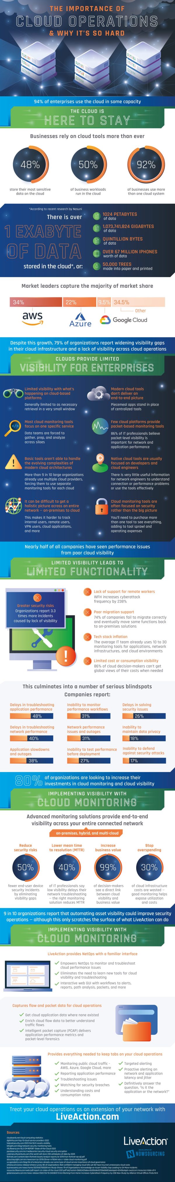 How can you mitigate this risk? The most effective method currently is by the use of cloud monitoring services. Cloud monitoring services help by condensing data into a few platforms, allowing swifter troubleshooting and issue resolution. Furthermore, cloud monitoring also improves upon and introduces new tools for network engineers for easier network and bug assessment. Some services, like LiveAction, even integrate third-party cloud traffic and application performance data into one platform, ultimately simplifying the data analysis process. With their current costs and benefits, cloud monitoring seems like a quintessential addition to any business who wants to optimize their cloud services.