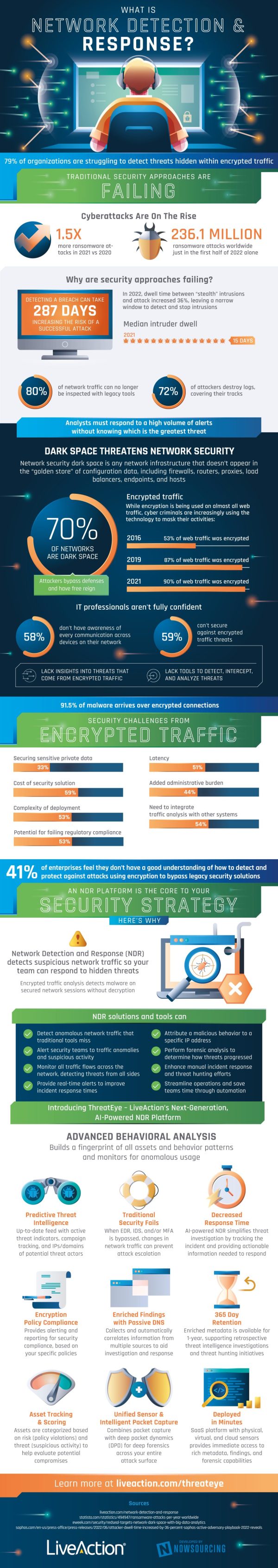 NDR systems can be the solution to the ever pressing  problem of encrypted cyberattacks. Learn more about the benefits of these systems and how they can increase cybersecurity in the infographic below: