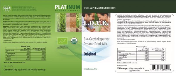 Label of L.O.V.E. Super Meal, 1260 g, Organic: