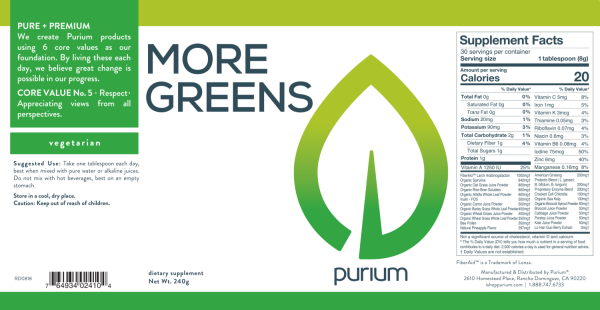 What it is: More Greens is a blend of super-foods, probiotics, ginseng, and bee pollen. More Greens is a great all-in-one supplement for anyone who wants to get maximum benefits from one supplement.